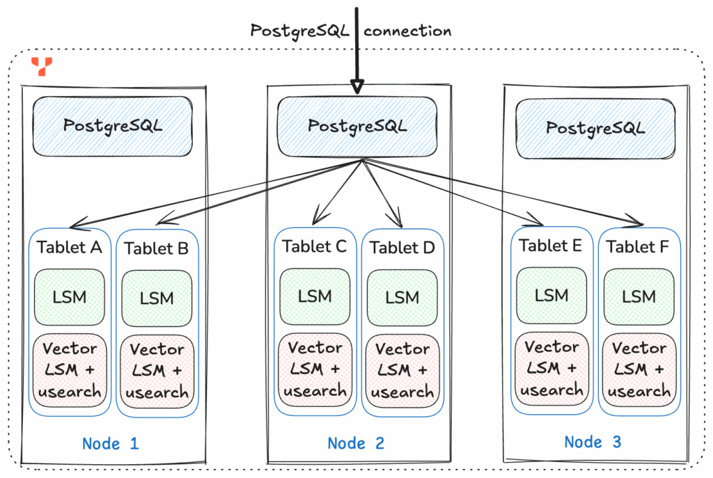 YugabyteDB leverages Usearch and a Vector LSM (Log-Structured Merge) abstraction to power high-dimensional approximate nearest-neighbor (ANN) search at scale.