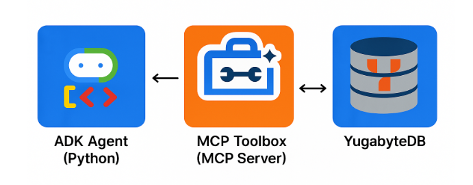 ADK Agent (Python) ← MCP Toolbox (MCP server) ←→ YugabyteDB (products/users/orders/reviews)