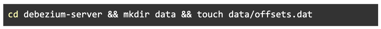 Go to the debezium-server directory and create a `offsets.dat` file to store the offsets for debezium-server.