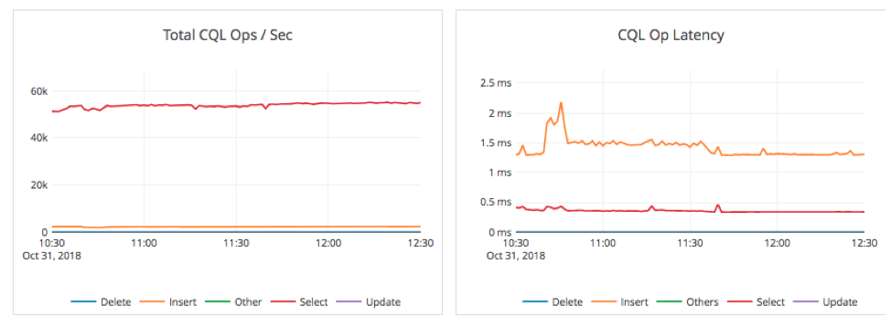 Once we loaded 2 billion records into the cluster, we ran the following read intensive workload.