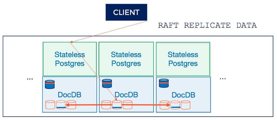 The underlying DocDB cluster is fault-tolerant. This means that node failures do not affect the SQL application using this distributed SQL database. It simply starts communicating to a new node as opposed to native PostgreSQL where the common approach of master-slave replication inevitably leads to manual failover and/or inability to serve recent commits.