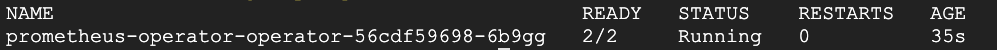 $ kubectl create namespace prometheus $ helm repo add stable https://kubernetes-charts.storage.googleapis.com $ helm repo update $ helm install prometheus-operator stable/prometheus-operator \ --namespace prometheus \ --values values.yaml