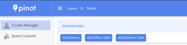 Figure 7: Cluster Manager Configuration in Apache Pinot Click “Add Schema” and enter the dimension, metrics and timestamp fields (see below) and save it.