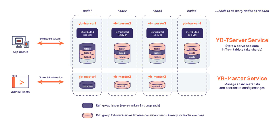 To those new to Raft, the simplest explanation is that it is a protocol with which a cluster of nodes can agree on values. It is arguably the most popular distributed consensus protocol in use today. Business-critical cloud-native systems like etcd (the configuration store for Kubernetes) and consul (Hashicorp’s popular service discovery solution) are built on Raft as a foundation. YugabyteDB uses Raft for both leader election as well as the actual data replication. The benefits of YugabyteDB’s use of Raft including rapid scaling (with fully-automatic rebalancing) are highlighted in “How Does the Raft Consensus-Based Replication Protocol Work in YugabyteDB?”. Raft is tightly integrated with a high-performance document store (extended from RocksDB) to deliver on the promise of massive write scalability combined with strong consistency and low latency.
