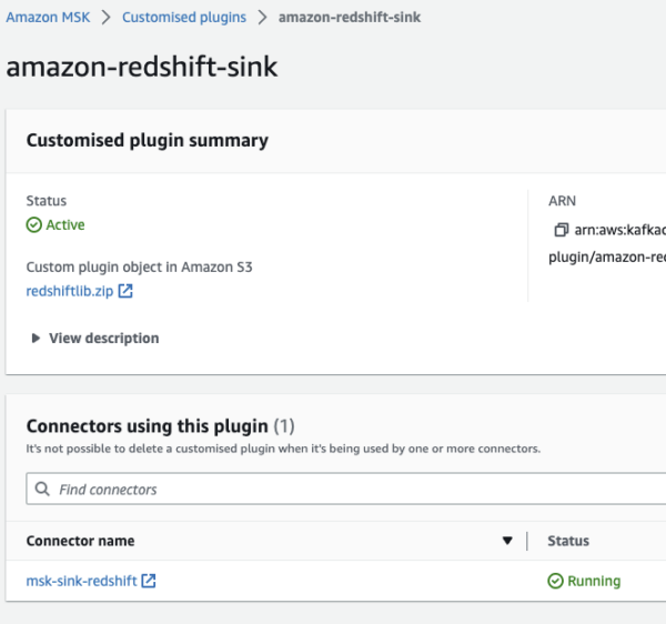 Figure 5: Create a custom plugin for Amazon Redshift Create MSK Sink Connect for Amazon Redshift