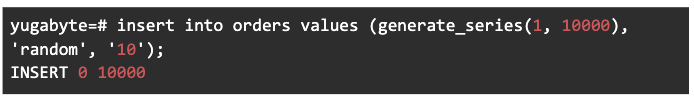 From here, we’ll push 10,000 rows into the YB table “orders” using the below command: