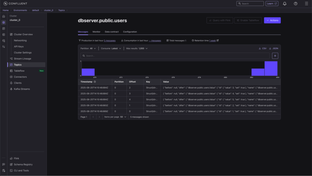 dbserver.public.users. Once created, your topic dashboard will display the new topic.